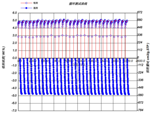 異なる温度と圧力下で吸着および脱着環境を制御することにより、水素貯蔵材料のPCT曲線、吸着および脱着速度曲線、吸着および脱着サイクル寿命曲線、およびTPA/TPD曲線が決定され、水素貯蔵材料の開発および改良のためのデータサポートを提供し、水素エネルギー貯蔵および応用の研究開発のための強力なツールを提供する。